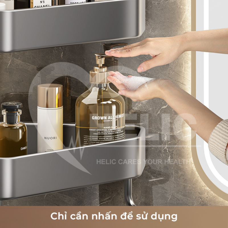- Dù ấn mạnh khi lấy sữa tắm hay dầu gội, kệ vẫn bám chắc vào tường, không rung lắc - không xê dịch - không lo rơi rớt.