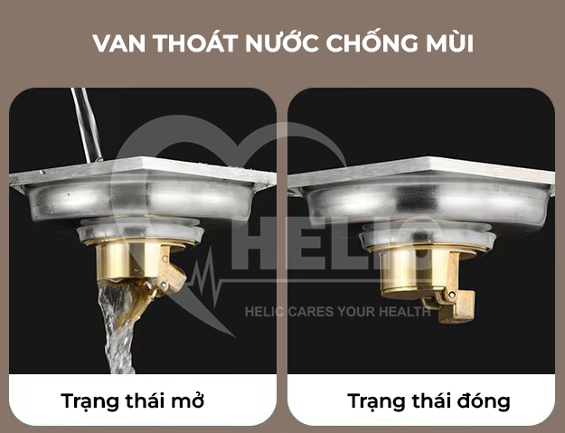 - Tự động mở khi có nước, ngăn mùi hôi hiệu quả.