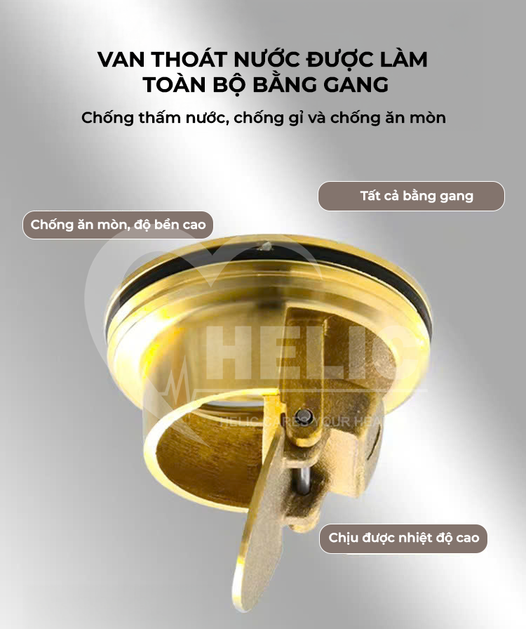 - Van thoát nước chống mùi bằng gang: chống gỉ sét, kháng khuẩn, bền bỉ theo thời gian.