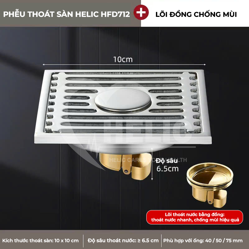 - Tên sản phẩm: Phễu thoát sàn Helic HFD712