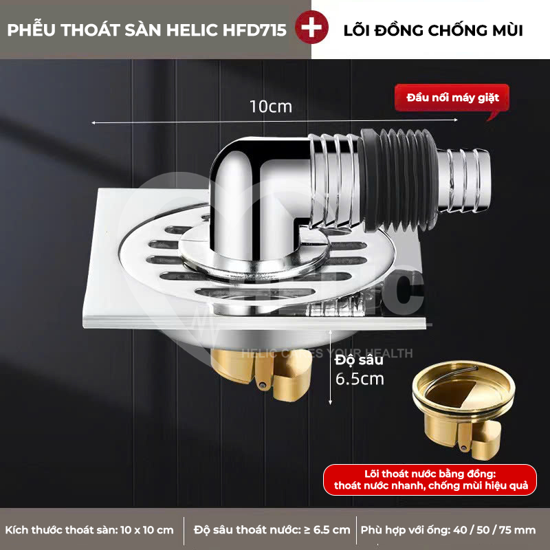 - Tên sản phẩm: Phễu thoát sàn Helic HFD715