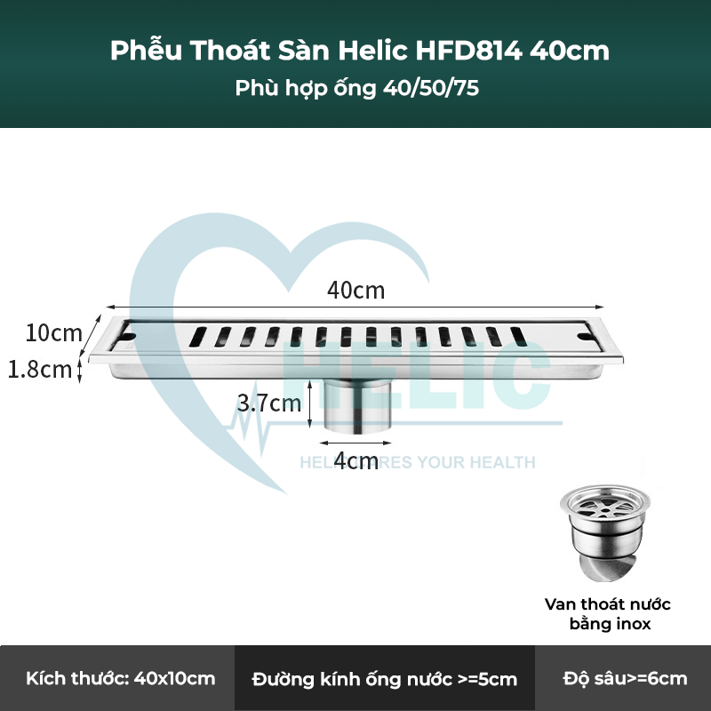 Trong hệ thống thoát nước của mỗi nhà, mỗi công trình, những vấn đề như tắc nghẽn đường ống, nước bẩn trào ngược, mùi hôi khó chịu và côn trùng từ cống thoát nước luôn gây ra nhiều khó chịu, ảnh hưởng đến sự tiện nghi và sức khoẻ. Do đó, phễu thoát sàn Helic HFD814 40x10cm ra đời như một giải pháp thông minh, giúp dễ dàng xử lý triệt để các rắc rối thường gặp trong hệ thống thoát nước. Với thiết kế hiện đại, tính năng vượt trội và độ bền cao, sản phẩm mang đến sự an tâm tuyệt đối cho mọi gia đình, công trình.
